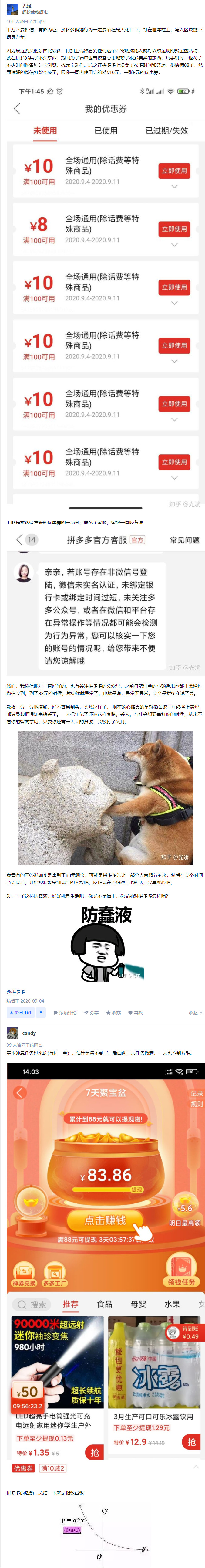 我本身都忘了这本来是3单成员里面的。当时还有一丝懊恼,退款了不就全返不了吗?结果我在网上一搜索“拼多多3单全免是真的吗?”,出来许多知乎网友,那是把拼多多菊花都爆了。拼多多的尿性都摸得一清二楚。这tm根本就不会全兔单,而是送几张优惠券,好像是5元一张,还要满多少才能使用。它的条款写得特别迷惑。这位老哥说得更清楚了。大家看图吧: