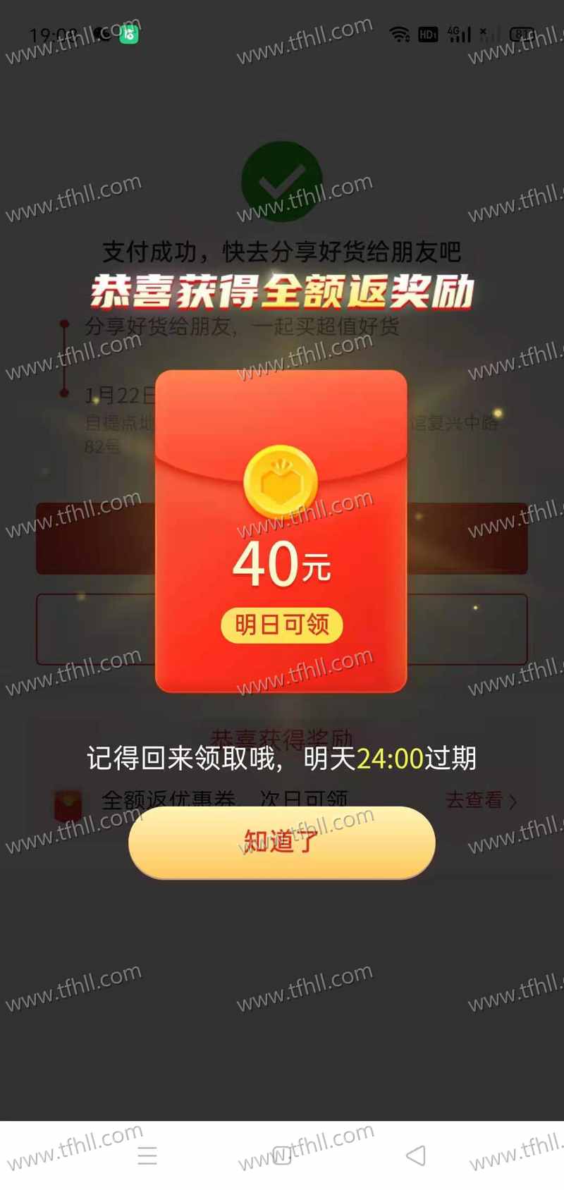 然后,有意思的来了,那个说好的返40元的进度条一下子走完了。弹出来三个红包提现,我选了一个,0.1元,0.1元提现到了微信钱包。我tm直接裂开!!!后面一研究,还tm是送券,而且要过了今天晚上24点才能领。全额返,就是tm给你几张券,这就全额返。返你妈卖批!!