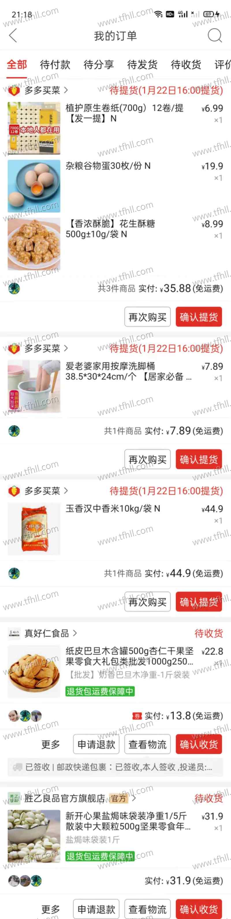 我开始还不知情,又tm进了交叉的活动(拼多多的活动跟苍蝇一样,一套接一套,还互相交叉),什么下3单全返。我找了一圈,本身我是需要买一点年货的零食。有什么开心果、碧根果等东西。下了单之后,我思考了一下。又搜索了一下其他商家的价格,与这里参与活动的商家的价格对比。发现碧根果,有卖19块多一斤的。而这里我买成21.8元。我果断就退款了。