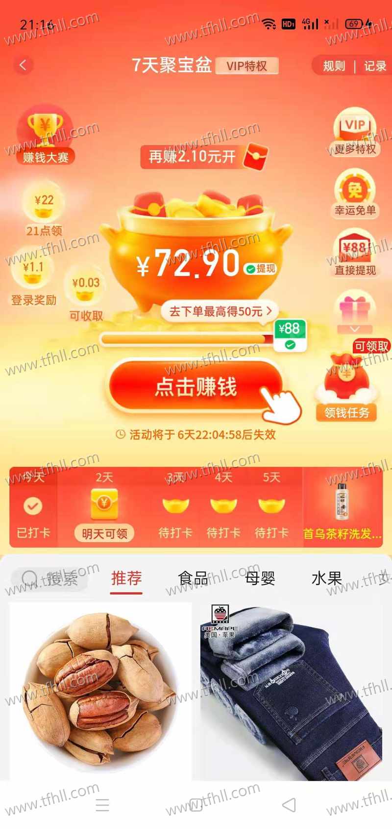 然后进度条又变成了88元的7天聚宝盆。这玩艺儿我之前有领教过,最后铩羽而归。这次又被套路在这上面来了。